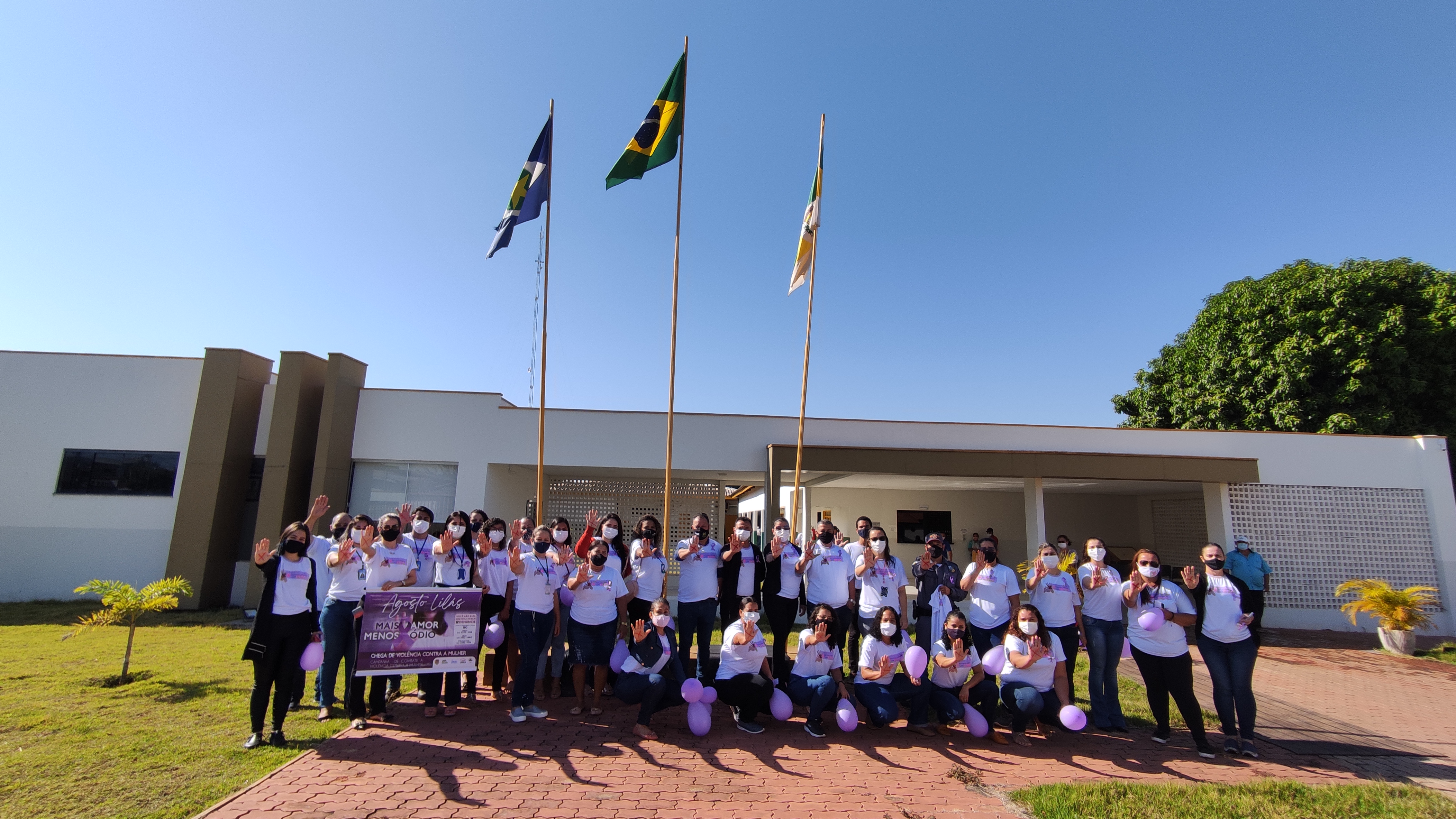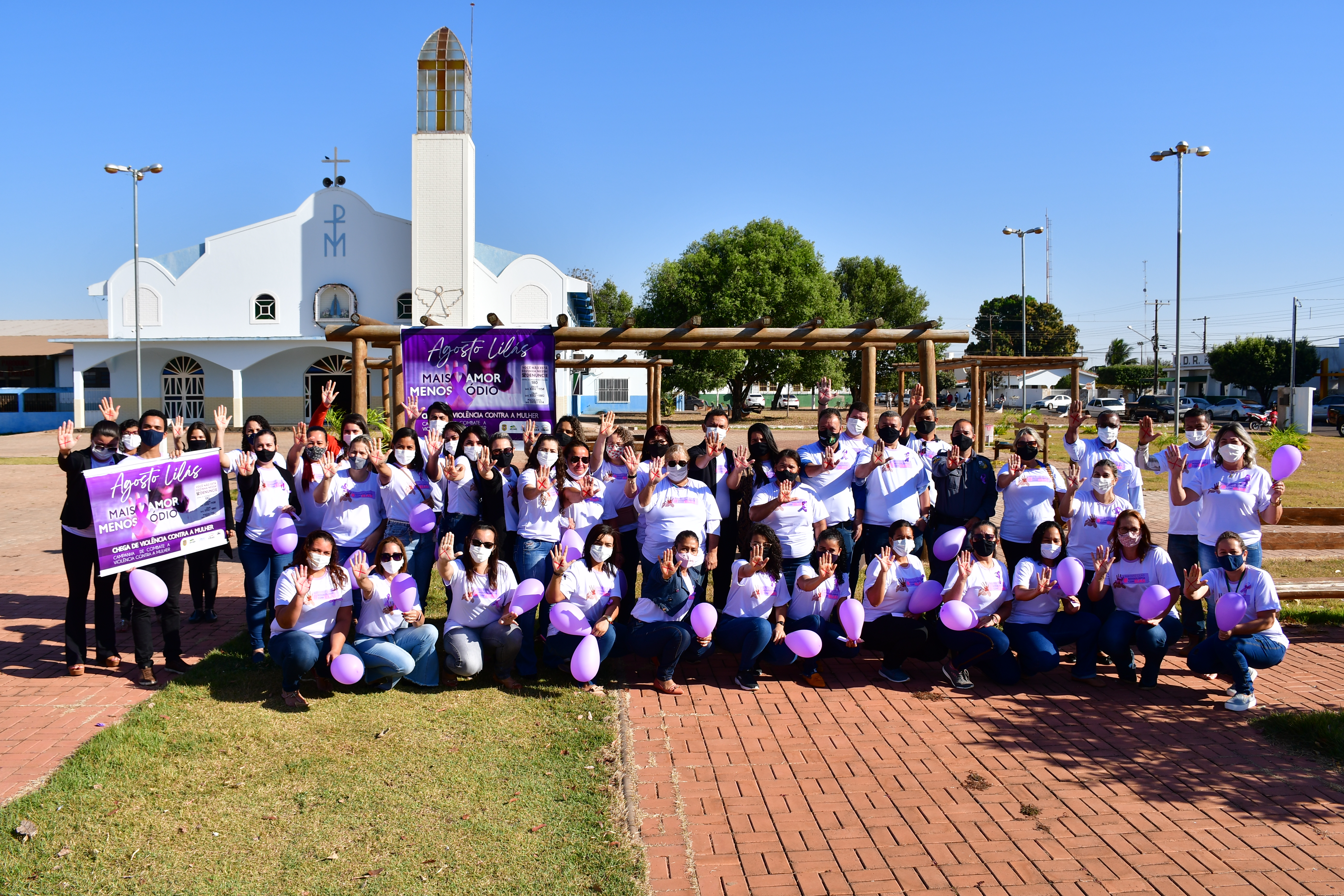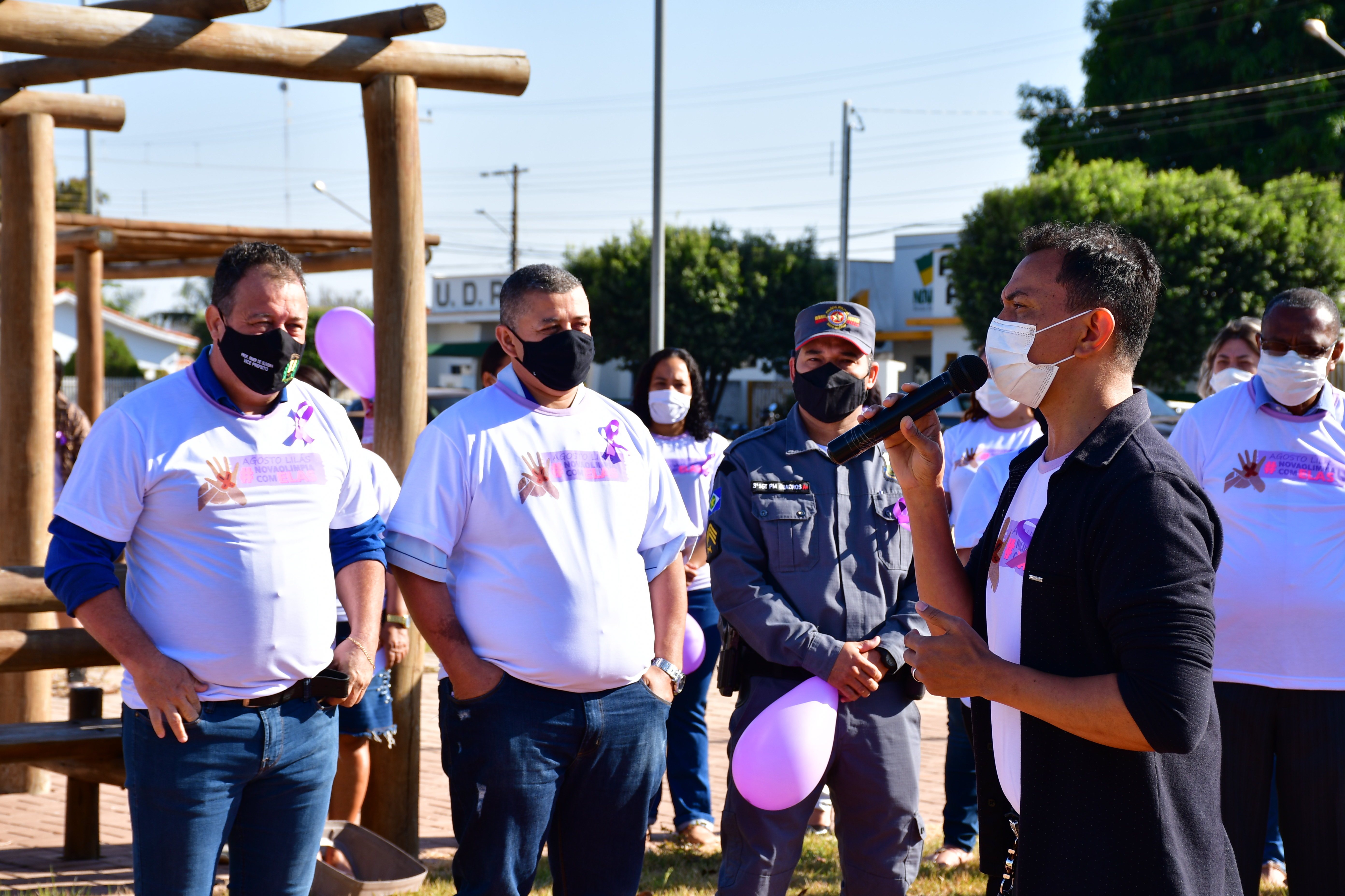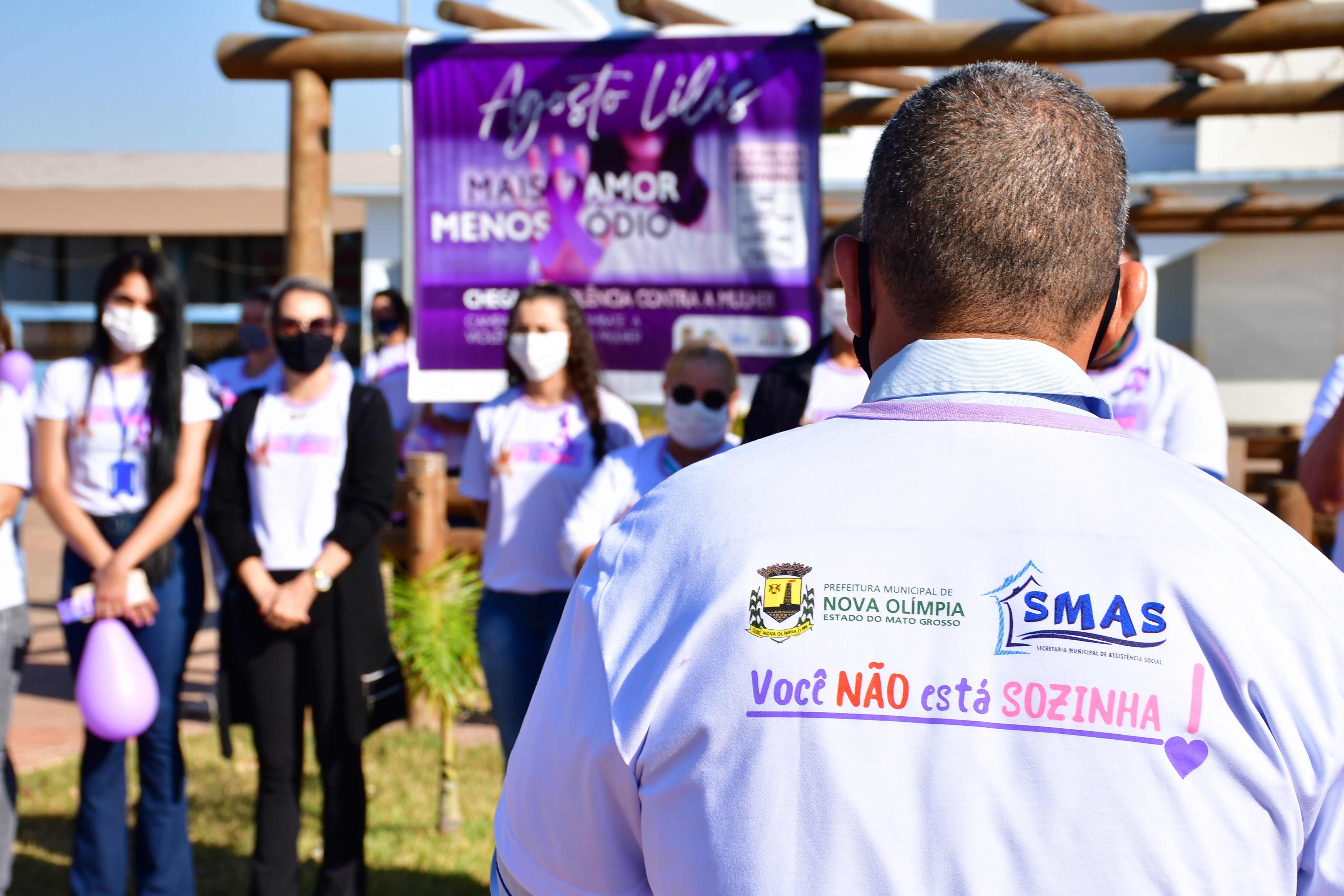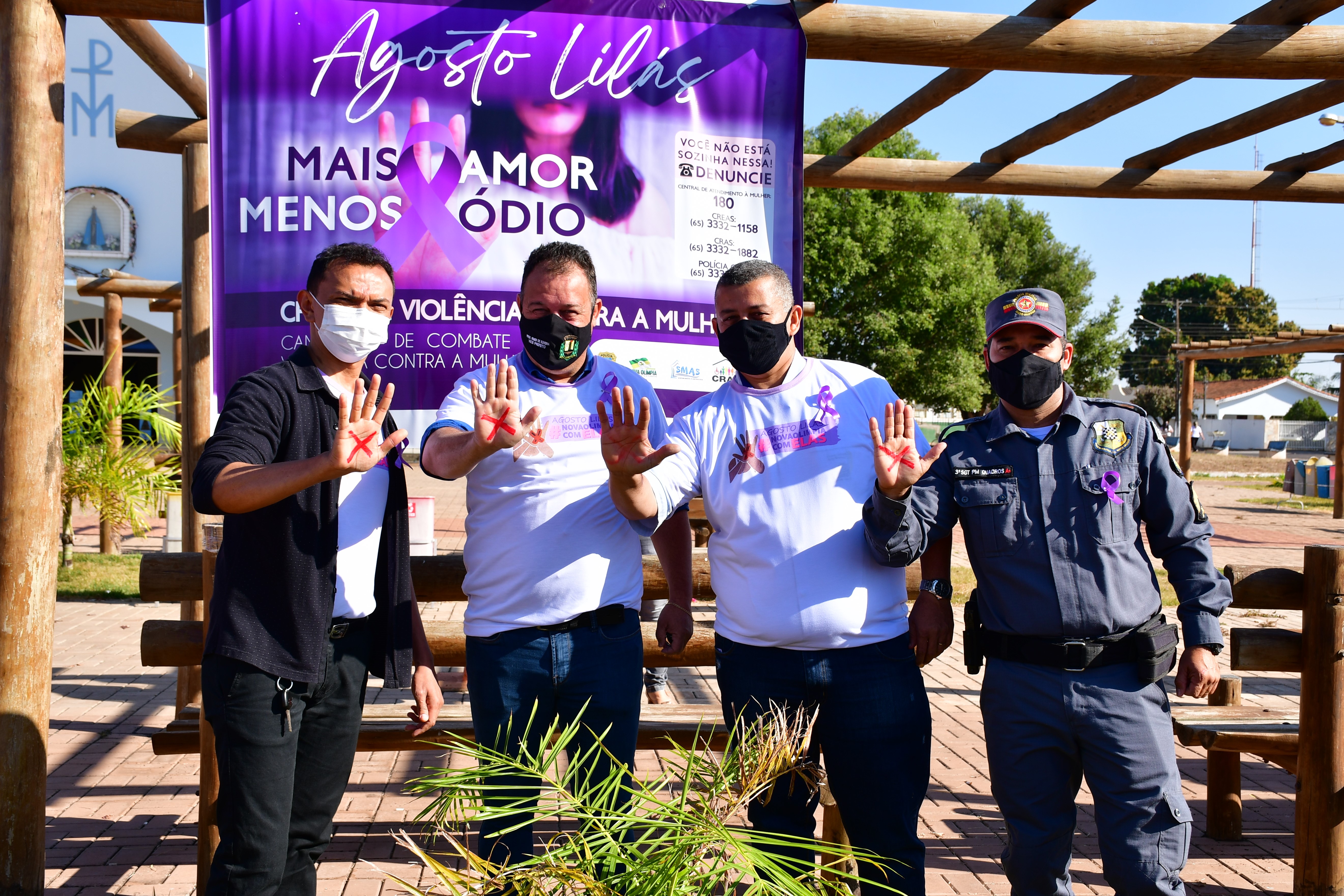 A Prefeitura de Nova Olímpia, através da Secretaria Municipal de Assistência Social, iniciou a semana com o lançamento da Campanha Agosto Lilás de Combate a Violência contra a Mulher. A solenidade de abertura, aconteceu na manhã desta segunda-feira (02.08) na praça da Igreja Matriz, na região central do município e contou coma a presença de representantes; (Governo Municipal) vice-prefeito, Rímer de Oliveira, (Câmara de Vereadores), Presidente Edinho Gregório, (Policia Militar), Sargento Quadros, (Agricultura), Ronaldo, (Empaer), Katiuscia, (Conselho Tutelar) Danieley, (Roatry Club) Claudia Bradão, (Casa da Amizade), Dores, (Conselho de Assistência Social), Rita Duarte, (Cras) Melissa, (Creas), Elisa.