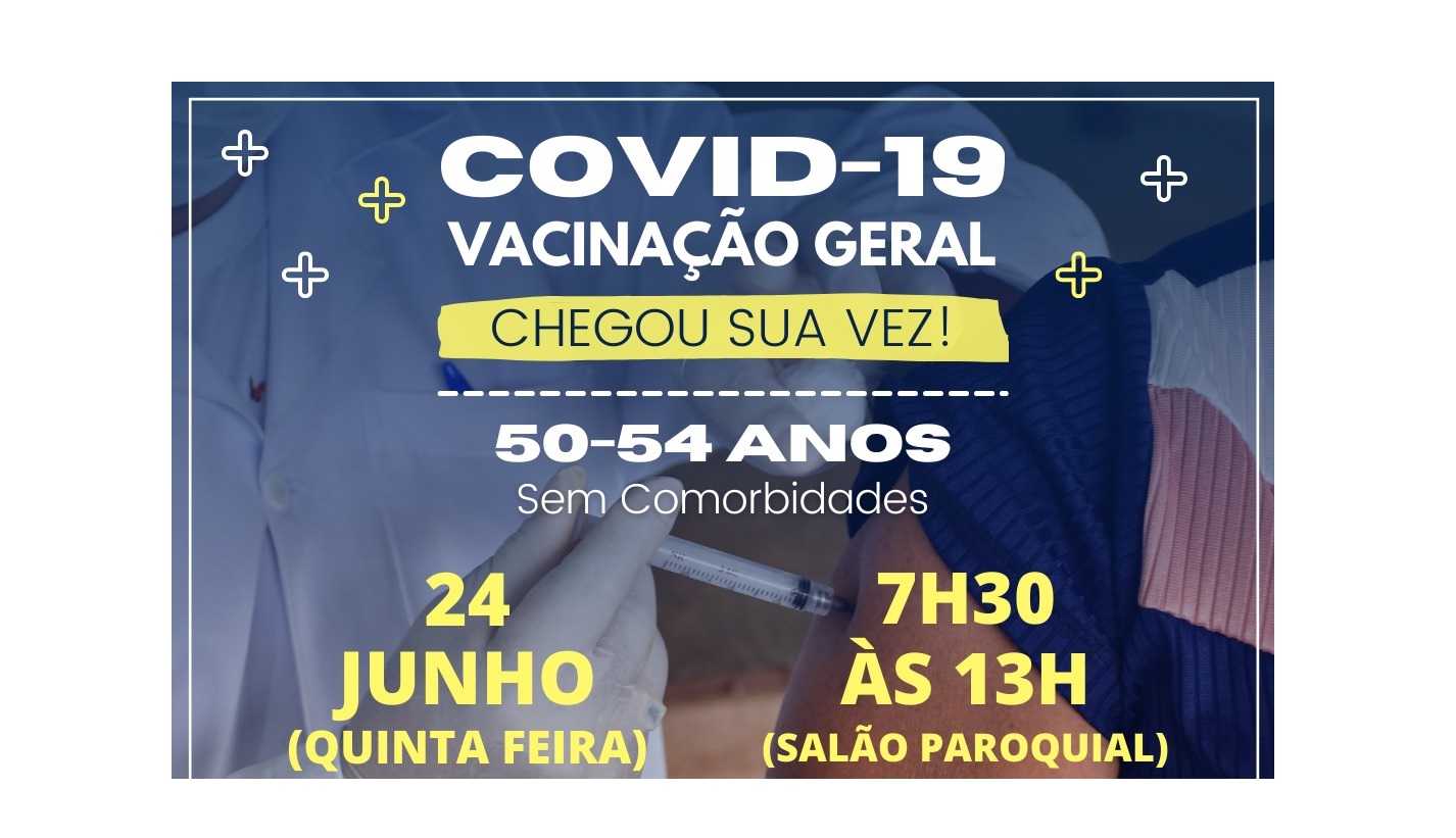 A Secretaria Municipal de Saúde de Nova Olímpia vai vacinar neta quinta-feira, (24) pessoas sem comorbidade que se enquadram dentro da faixa etária de 50 a 54 anos de idade. A Vacinação terá início às 07h30 e seguirá até as 13h00 no salão Paroquial da Igreja Matriz.