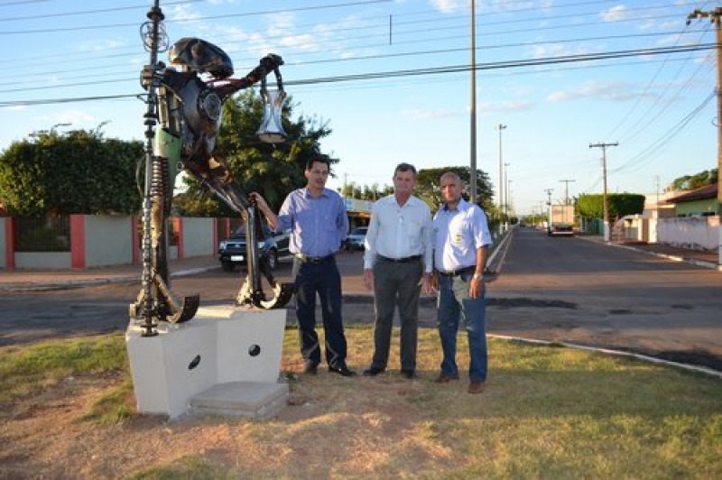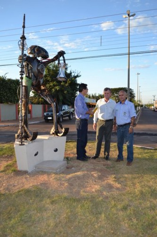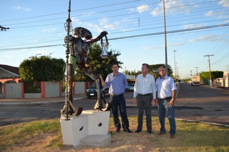 Acompanhado do prefeito Cristóvão Masson e assessoria, o parlamentar ficou por vários minutos observando os detalhes da criação de Genival Soares e ao final disse que o artista foi muito feliz em criar uma estátua com restos de sucatas. “É digno de aplausos. Ficou muito chique”, disse Ezequiel.