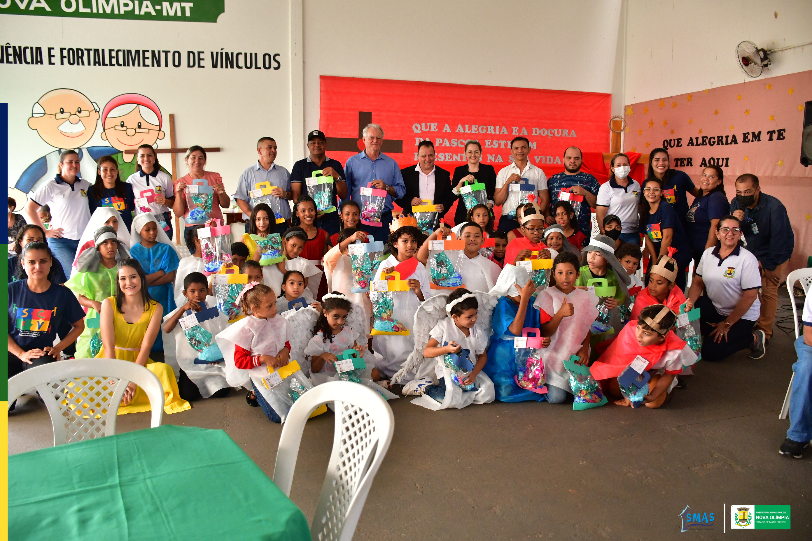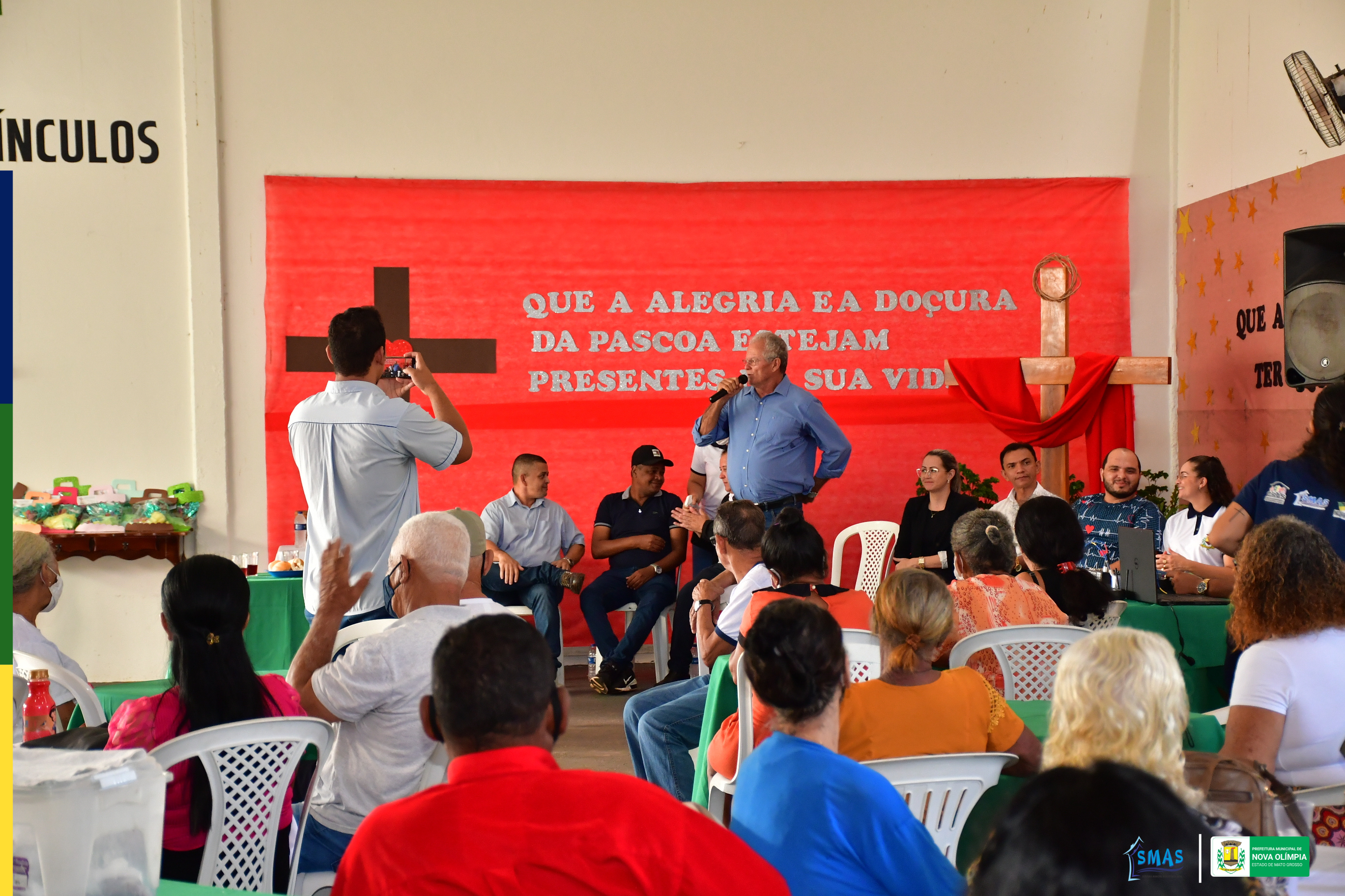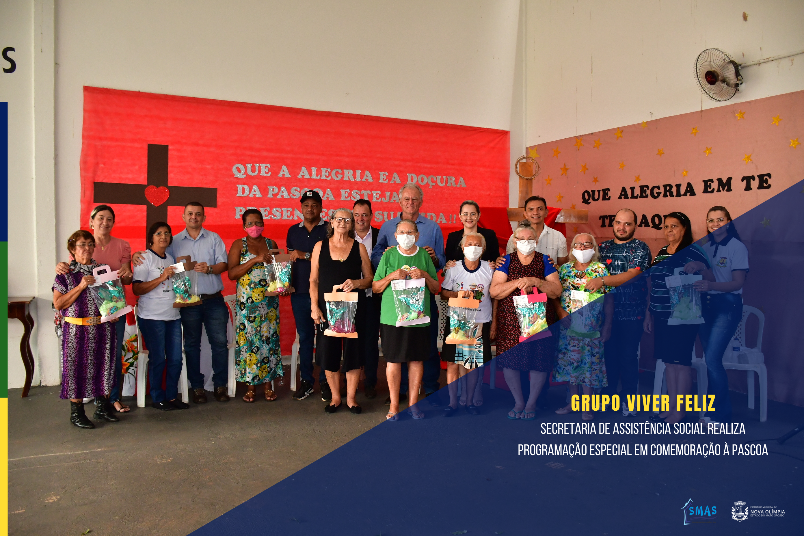 A Secretaria Municipal de Assistência de Nova Olímpia, através do CRAS, realizou uma manhã festiva em comemoração à pascoa. O evento aconteceu na última quinta-feira (12), no salão de eventos do Grupo Viver Feliz e contou com a presença do prefeito, José Elpídio de Moraes Cavalcante, vice-prefeito Rímer de Oliveira, presidente da Câmara, Edinho Gregório, chefe de gabinete, Marcos Antônio dos Santos Lima, secretária de Assistência Social, Melissa de Campos Giacomo, coordenação equipe técnica da pasta social.