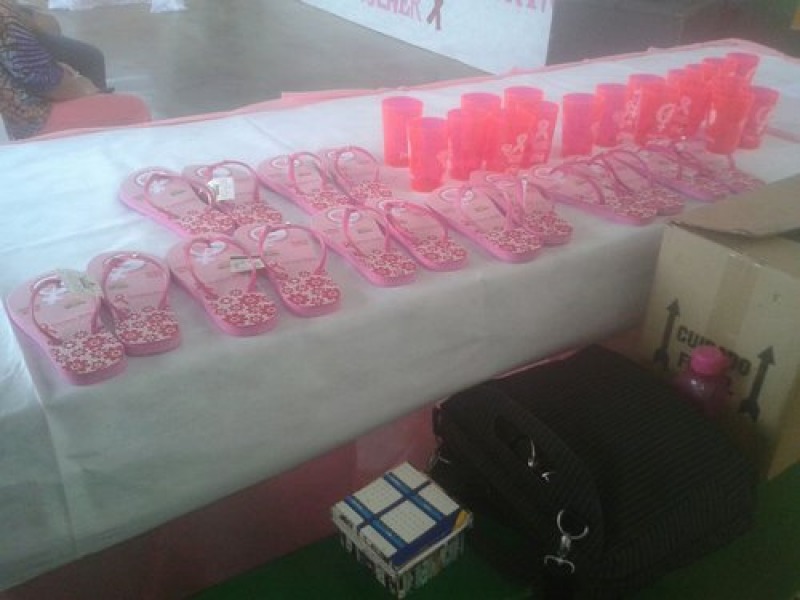 Ao fim das palestras foram sorteados chinelos e copos personalizados com o tema Outubro Rosa e ainda servido lanche.