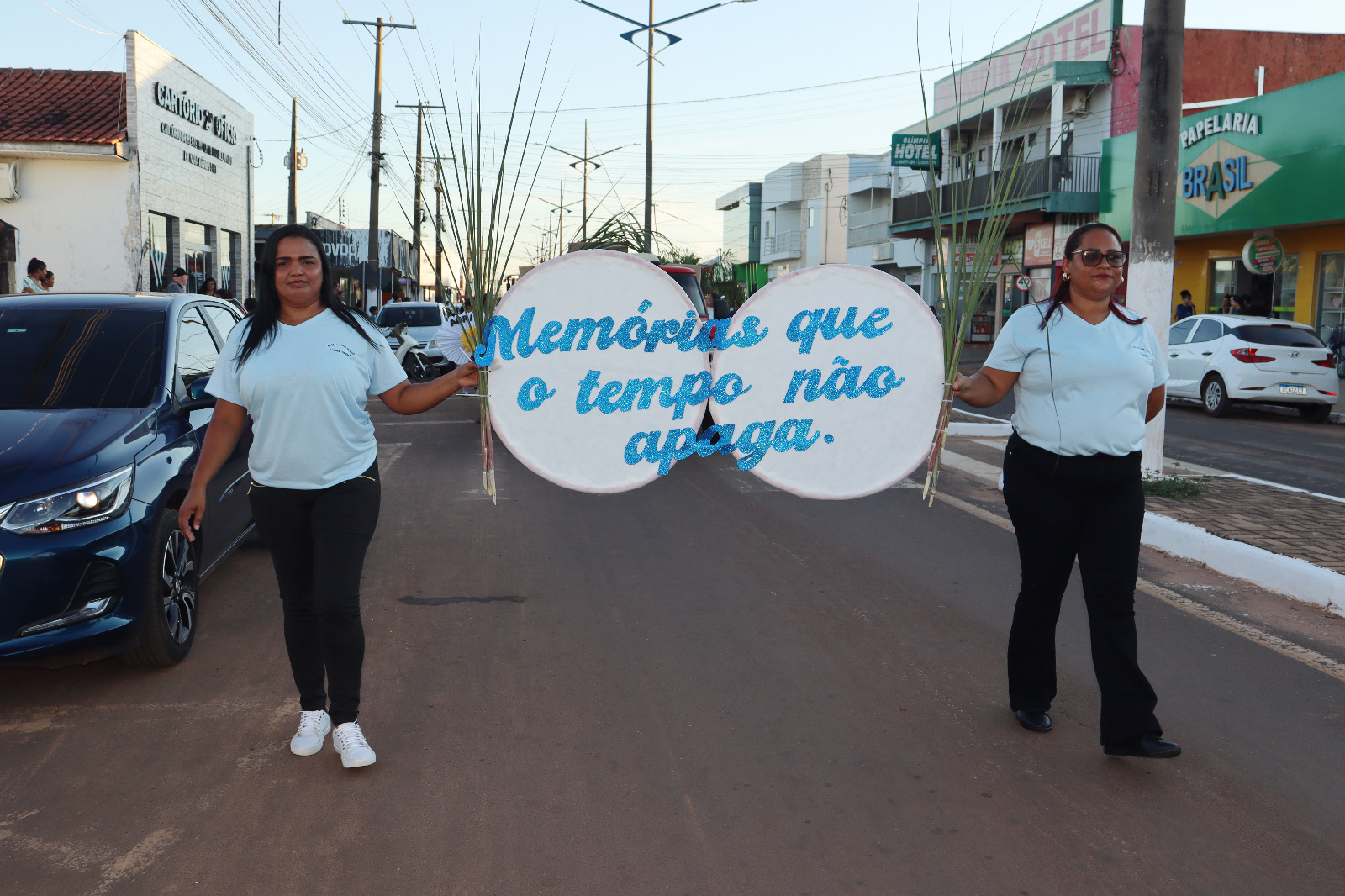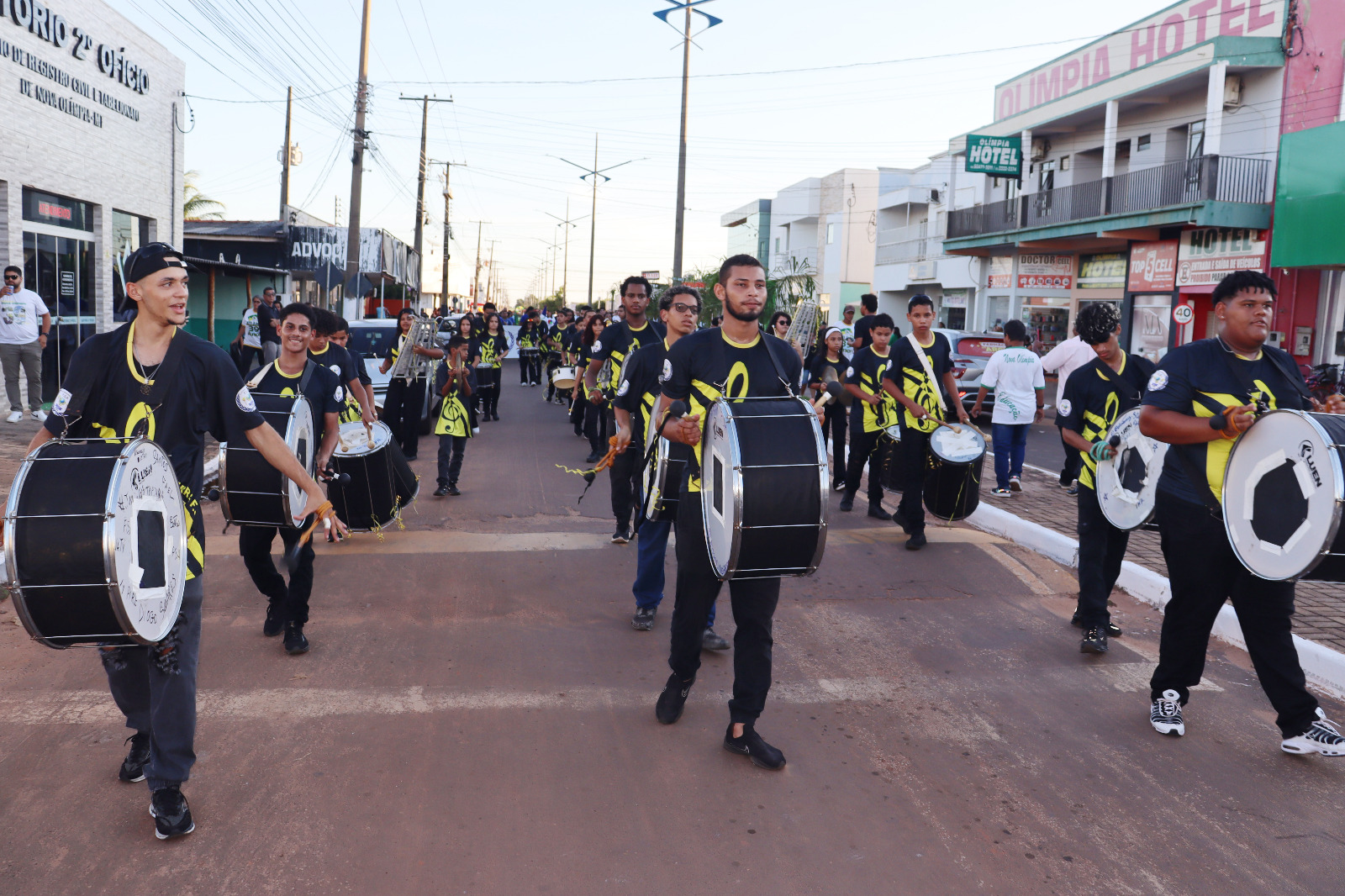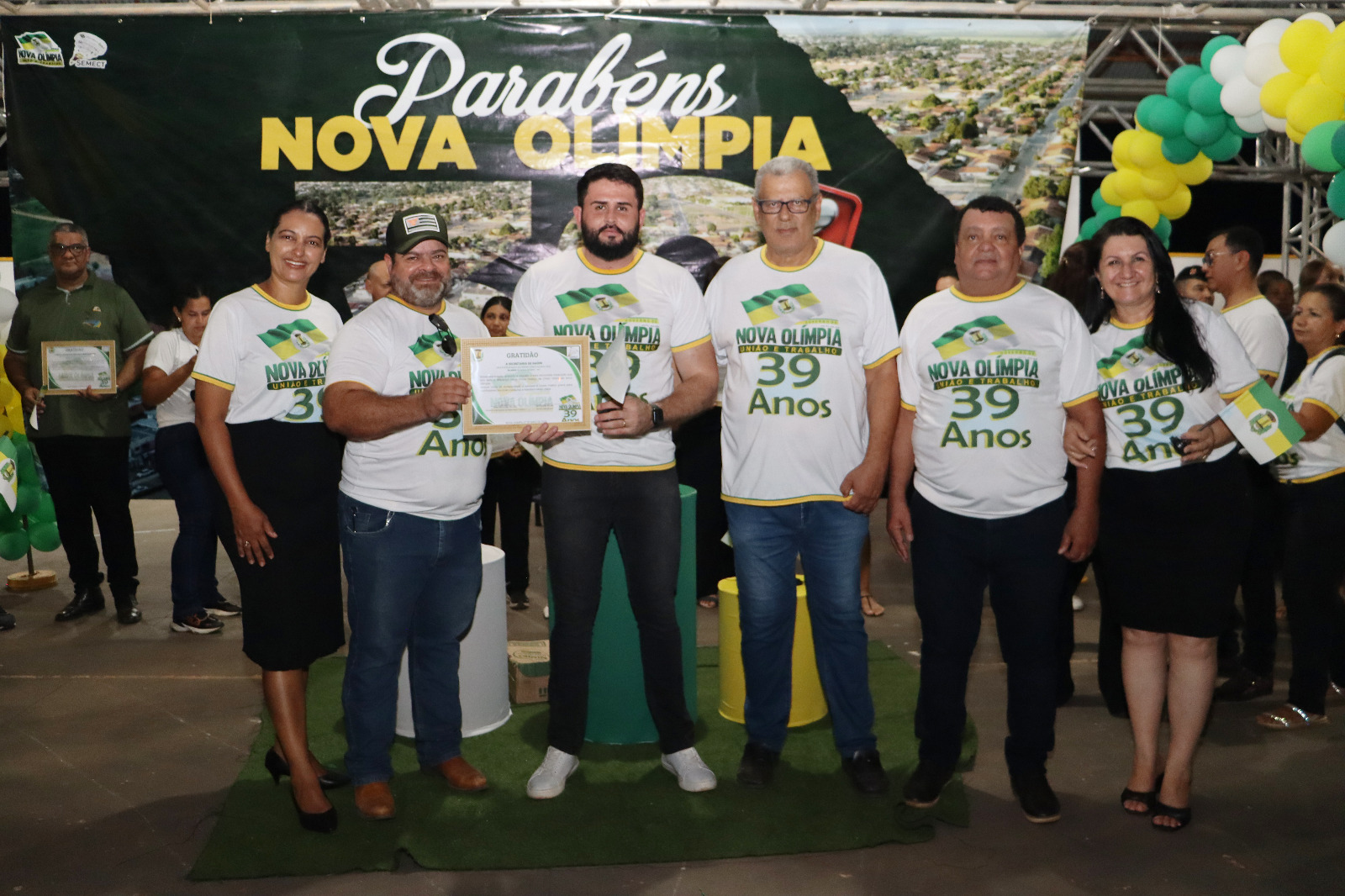 Durante o trajeto, alunos, professores, servidores públicos, parceiros e autoridades desfilaram com entusiasmo, demonstrando o sentimento de pertencimento e celebração pelo aniversário da cidade. Ao chegar ao Centro de Eventos, todos os grupos participaram de uma cerimônia de reconhecimento, na qual receberam certificados de agradecimento das mãos do prefeito Ari Cândido Batista e demais autoridades presentes, como forma de valorizar o empenho e dedicação de cada participante na construção e fortalecimento de Nova Olímpia.