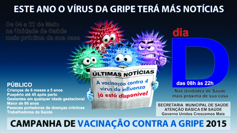 A campanha segue até o dia 22 de maio em todas as Unidades Básicas de Saúde da Família no horário normal de atendimento (das 07h00 às 11h00 e das 13h00 às 17h00).