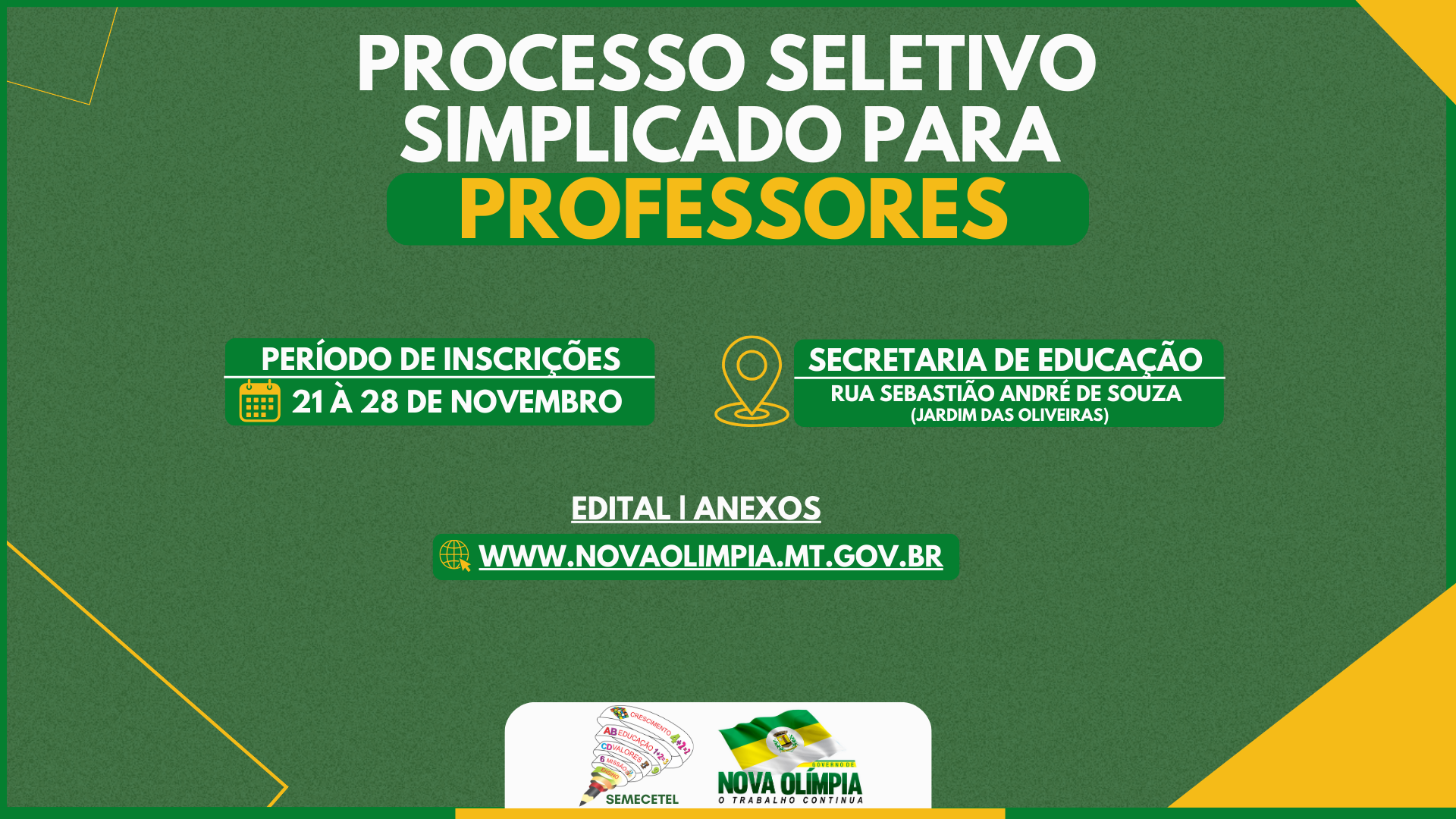 Nova Olímpia lança inscrições para Processo Seletivo Simplificado de Professores