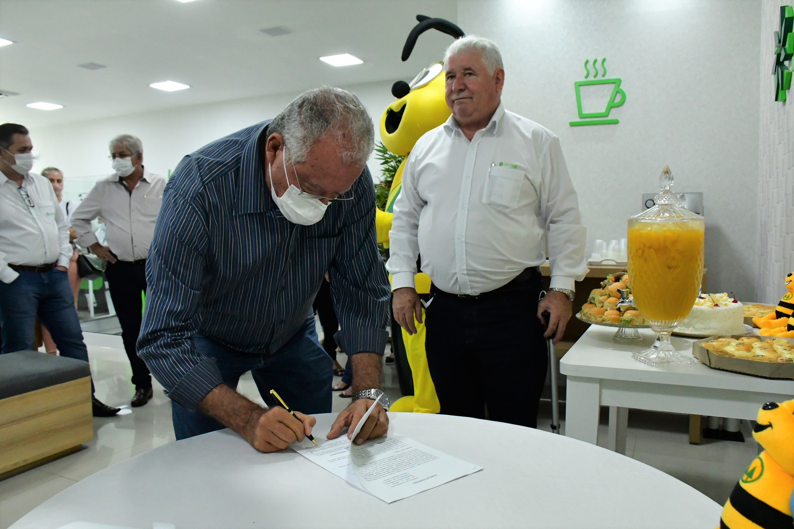 Na tarde da última segunda-feira, (08.11), o prefeito de Nova Olímpia, José Elpídio de Moraes Cavalcante, vice-prefeito Rímer de Oliveira, juntamente com a secretária de Educação, professora Débora Cristiane Ferreira participaram da solenidade de assinatura do termo de adesão ao Programa União Faz a Vida do Sicredi. O ato ocorreu nas dependências da agência de Nova Olímpia, oportunidade em que o presidente do Conselho de Administração da Sicredi Sudoeste MT/PA, Antônio Geraldo Wrobel e outras lideranças, assinaram o documento que visa aproximar ainda mais as comunidades escolares com a sociedade.