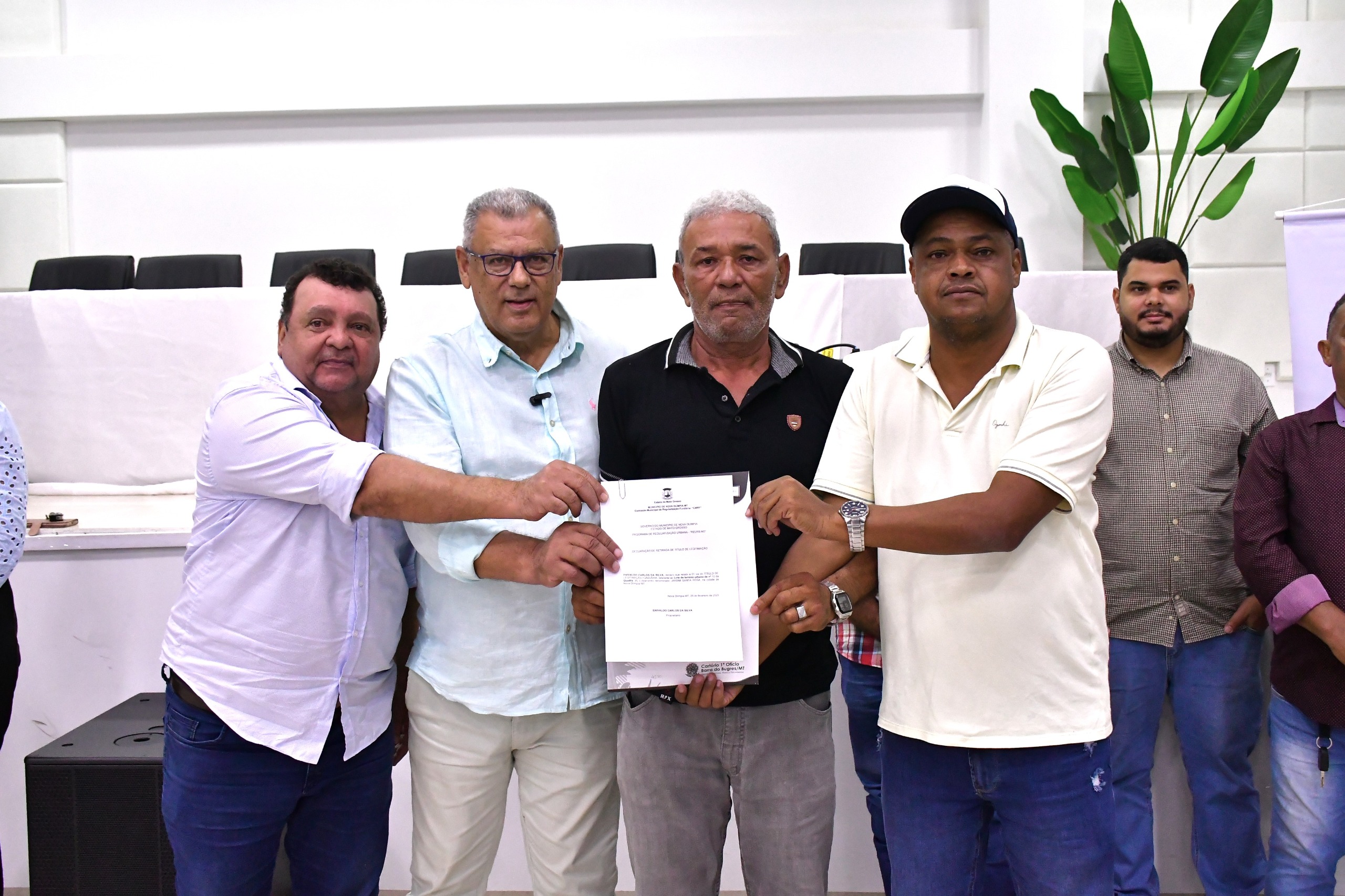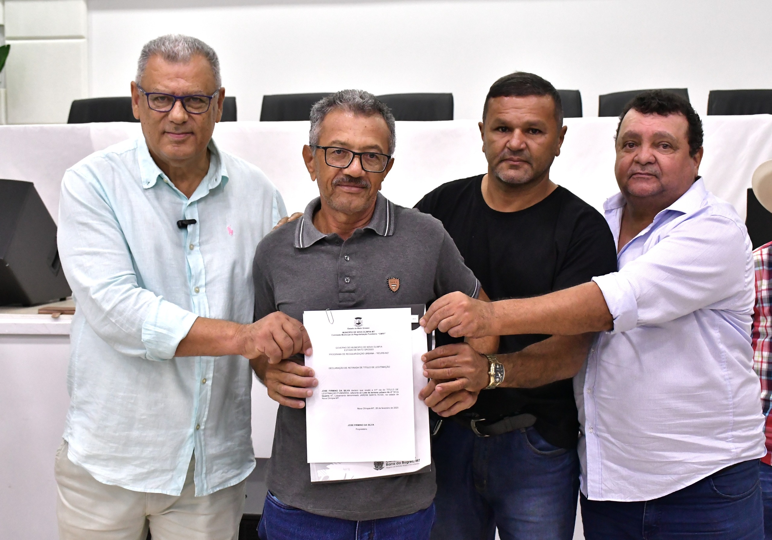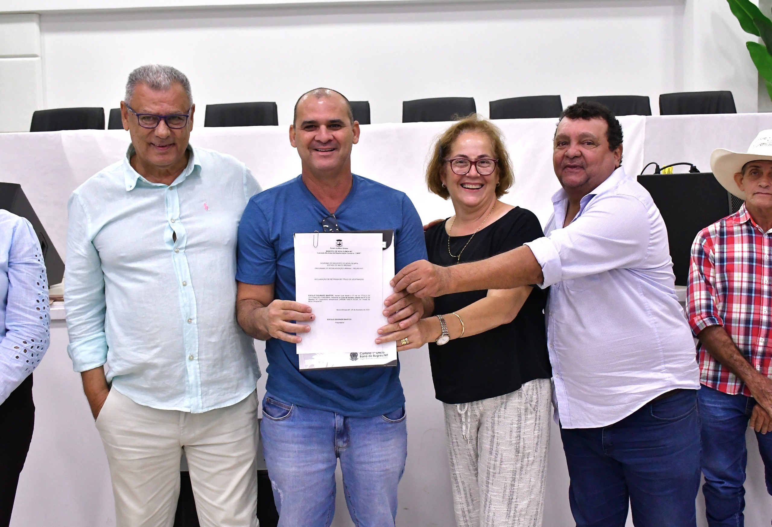 Na manhã da última quarta-feira (26), a Prefeitura Municipal de Nova Olímpia, em parceria com o Governo do Estado, por meio da MT-PAR e do Instituto de Terras de Mato Grosso (INTERMAT), realizou a entrega de 63 títulos definitivos de Regularização Fundiária Urbana. A cerimônia ocorreu no auditório Professora Sandra Rodrigues Santos Souza e beneficiou moradores do bairro Santa Rosa.
