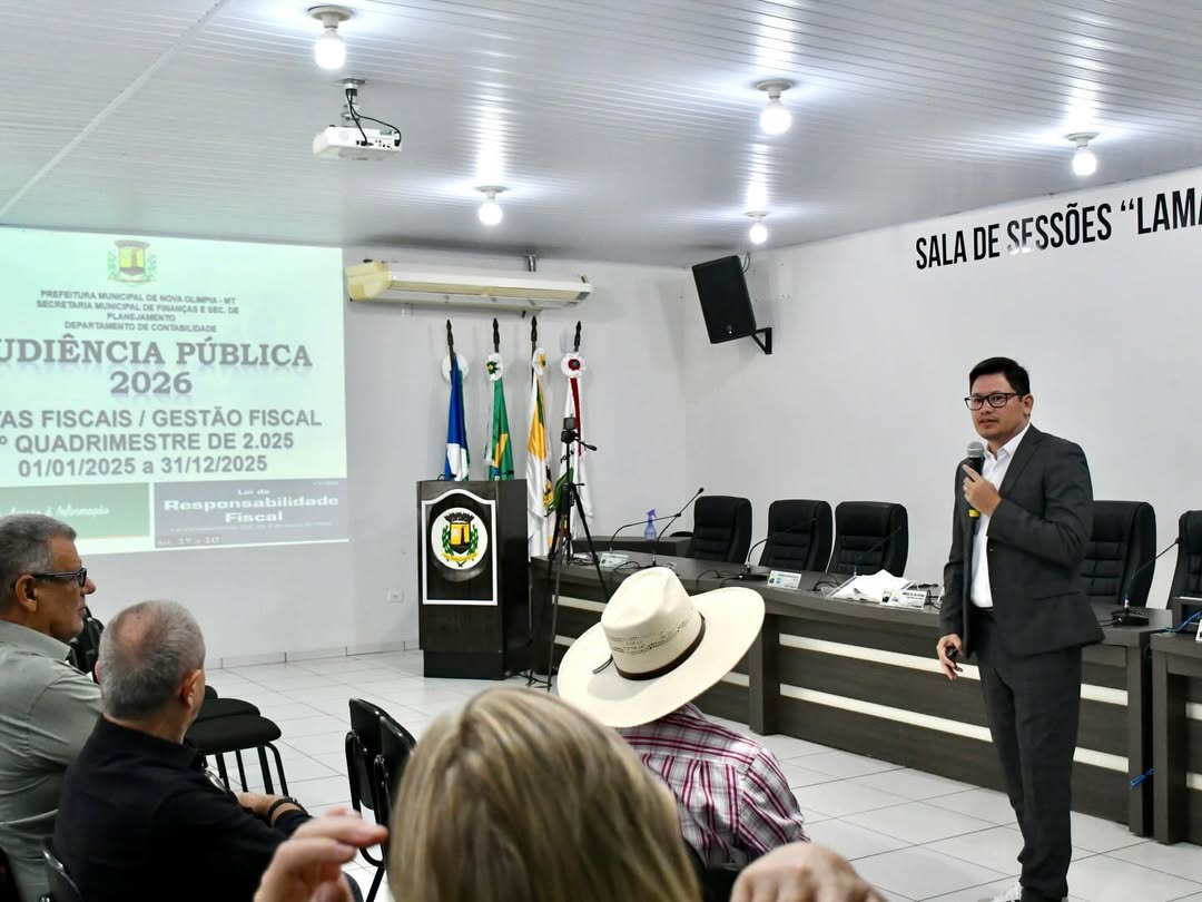 Na manhã desta quarta-feira (25), a Prefeitura de Nova Olímpia realizou uma importante Audiência Pública com participação cidadã, com o objetivo de apresentar e avaliar as metas fiscais referentes ao 3º quadrimestre de 2025.
