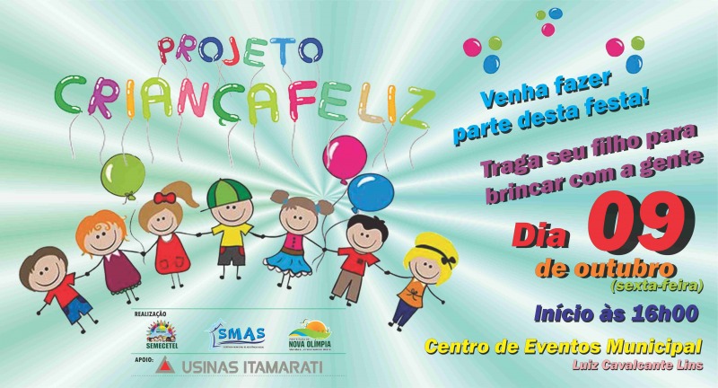 A Prefeitura Municipal de Nova Olímpia, através das secretarias de Assistência Social, Educação, Saúde, demais departamentos e setores e em parceria com as Usinas Itamarati promove o Projeto Criança Feliz, com uma tarde dedicada a fazer a diversão da garotada.