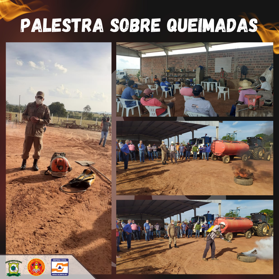 A Prefeitura de Nova Olímpia, através do Departamento de Meio Ambiente e Defesa Civil, em parceria com o Corpo de Bombeiros de Tangará da Serra, realizou na última semana de maio, uma palestra sobre combate as queimadas. O evento aconteceu na em um barracão na sede da fazenda do ex-prefeito, Cristovão Masson, cedido para as atividades. A Palestra foi conduzida pelo chefe de Meio Ambiente de Nova Olímpia e ministrada por membros do corpo de Bombeiros.