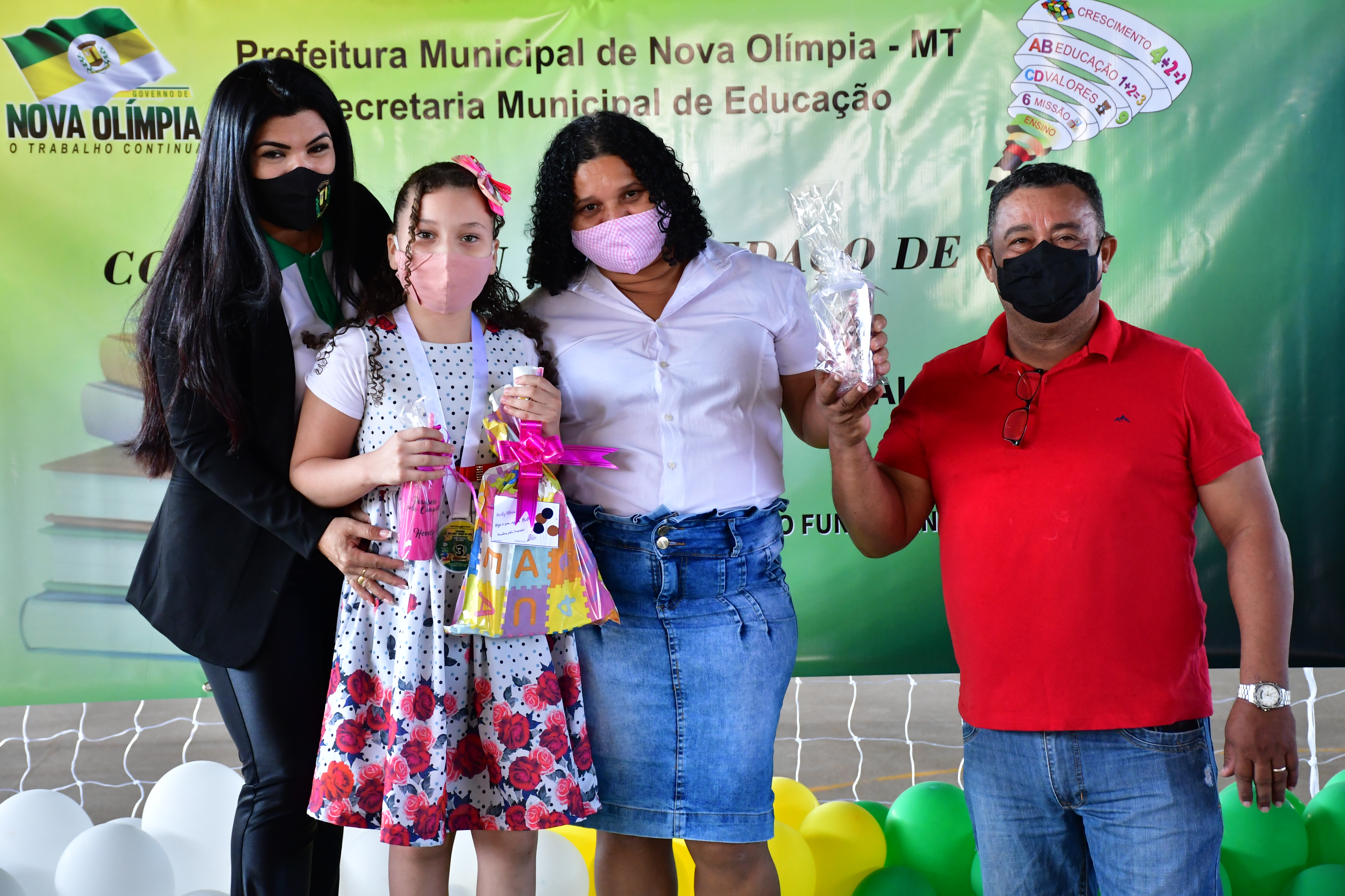 Com a presença de autoridades, diretores, coordenadores, professores, alunos e pais a (SEMECETEL), Secretaria Municipal de Educação Cultura Turismo e Lazer, realizou na manhã desta sexta-feira (13.08), no ginásio Mané Baiano, a cerimônia de entrega de premiação do Concurso “Meu Doce Pedaço de Chão” realizado com alunos da rede Municipal de Ensino de Nova Olímpia.