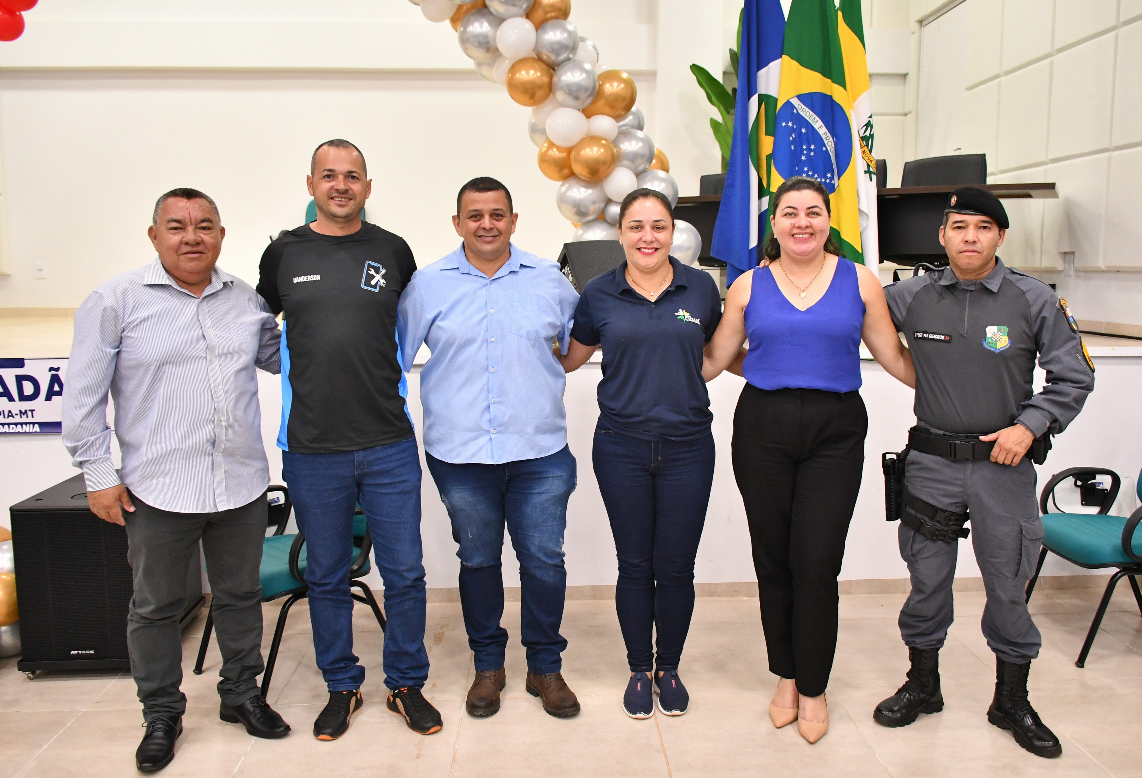 Participaram da solenidade os vereadores Edinho Gregório e Uanderson do Sindicato, a secretária Thereza Thomázia, tenente da PM Ednilma Cristina Moura Costa, o padre Aguinaldo Assunção Neves, o sargento da PM Rechmann e a coordenadora do CRAS, Eliza Schefer.